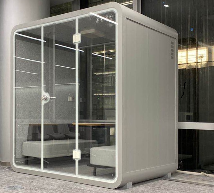 产品描述:富程商务静音舱专为公共大空间内独立商务小空间隔断设计,如大办公室、商场、机场、车站、码头等,公共或公开大空间内人员密集,电话、交谈、公务、休息环境变得如此不堪。富程商务静音舱让公共区域不再公开,该系列静音舱占地约3.5㎡,可根据需求定位为可移动小型会议室、临时办公空间、商场母婴室以及其他需要保持安静的独立空间。